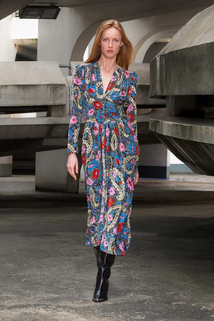 La diseñadora presentó en París su colección otoño invierno 2021/2022 donde los colores vivos, y las estampas florales son protagonistas.