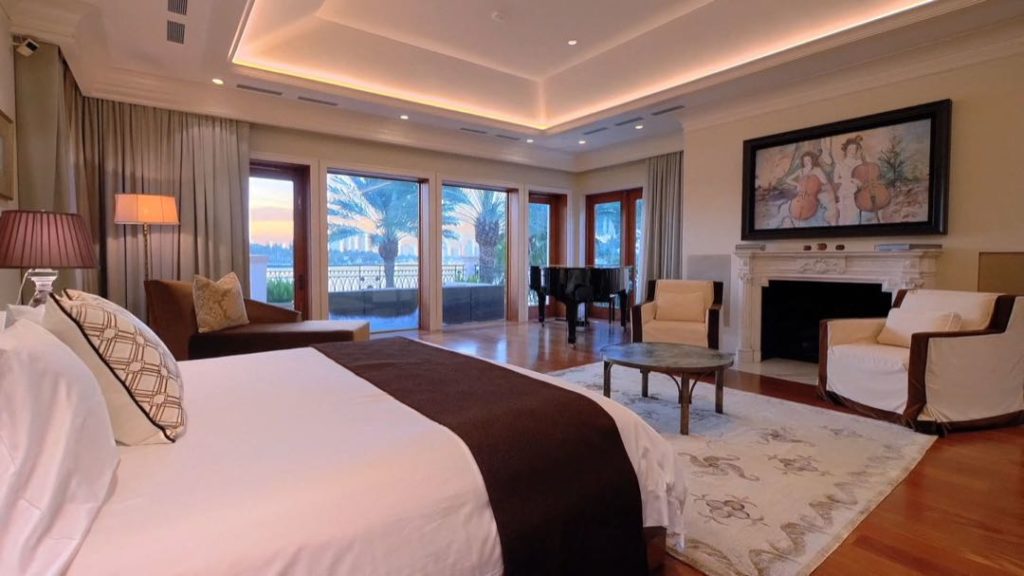 Tiene ascensor, y el dormitorio principal está conectado a una sala de estar, oficina y dos amplias terrazas con vistas a la bahía.