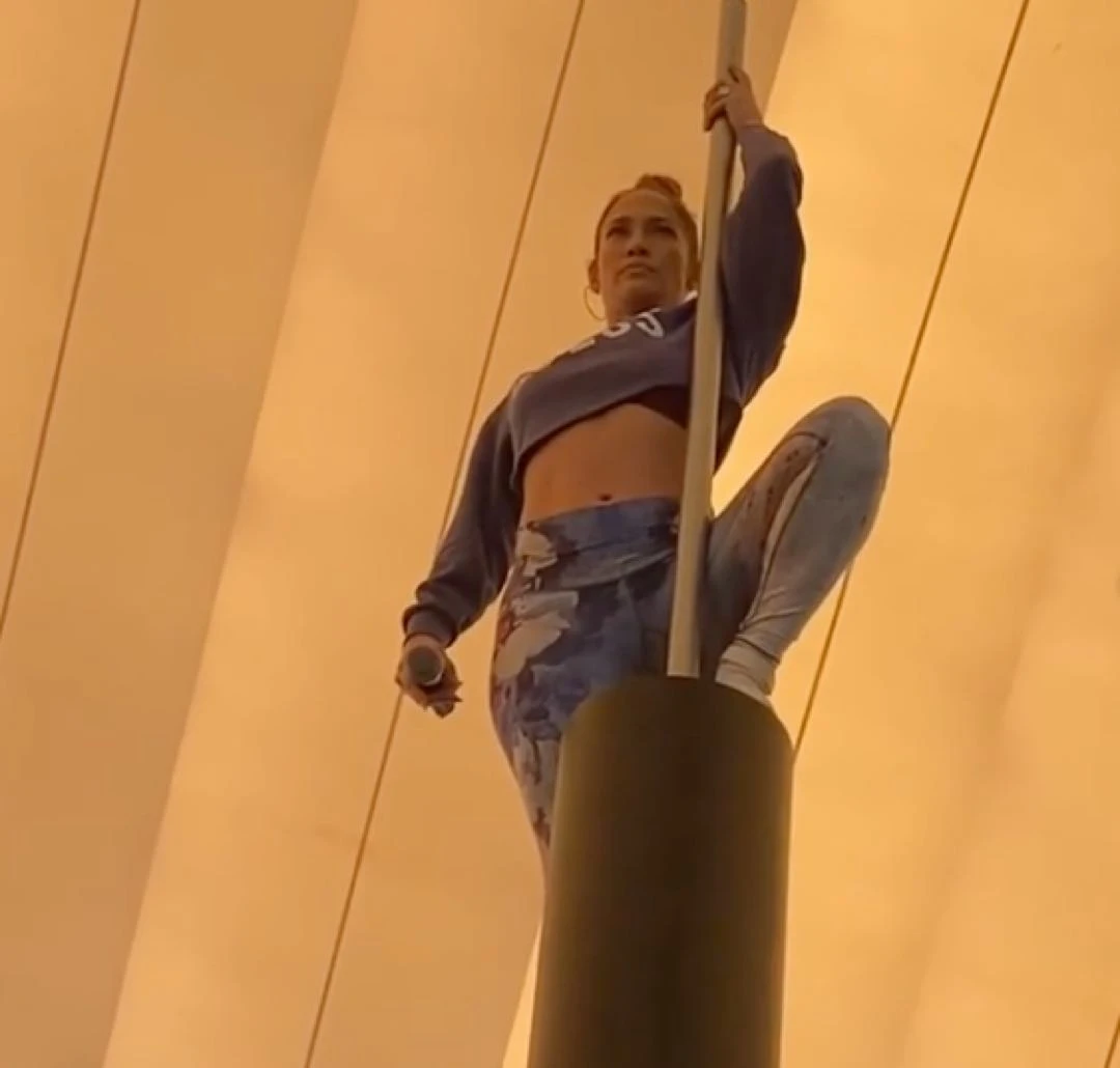 Vestida con sus calzas y un simple buzo, JLo lideró cada ensayo. Se la vio trepar, saltar y bailar al ritmo de la música entre decenas de jóvenes bailarines y sin perder el aliento.