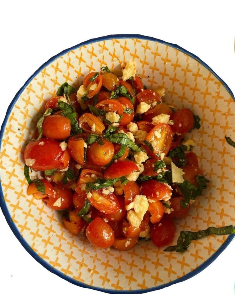 En ellos se veían delicias vegetarianas como ensalada de tomates cherry con albahaca y queso vegano, champiñones salteados, quínoa con vegetales, arroz al azafrán con vegetales salteados y ensalada de repollo blanco y colorado con mayonesa vegana.