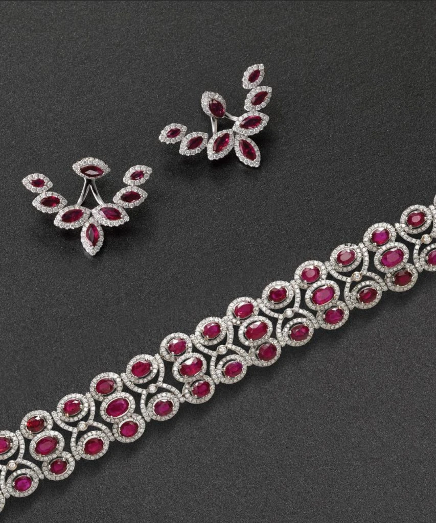 LAs joyas también fueron protagonistas y esta vez eligió un par de aros y pulsera haciendo juego de oro blanco brillantes y rubíes.