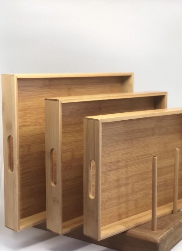 Se usan en materiales como madera, bambú, fibra, mármol y metal, y de diferentes formas y acabados.