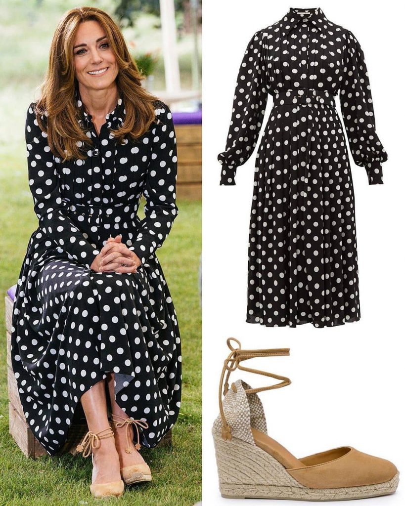 Para la ocasión, Kate eligió un vestido estilo camisero negro con grandes lunares de su diseñadora favorita Emilia Wickstead.