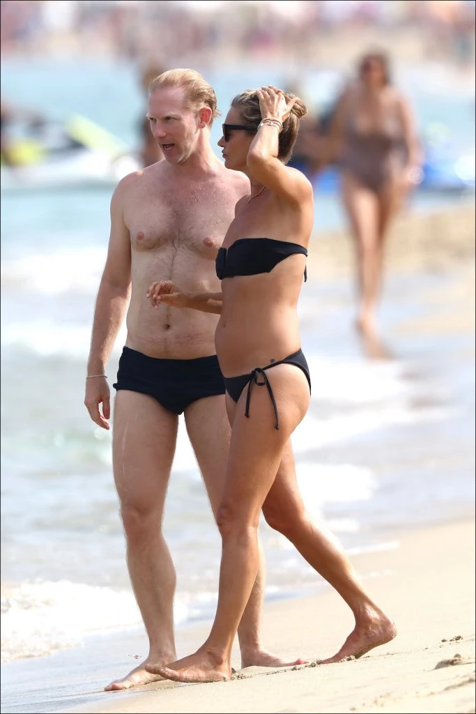 Disfrutando del verano en Saint Tropez ya la vimos paseando con amigos y haciendo compras con su amiga Sadie Frost. Esta vez disfrutó de la playa con un grupo de amigos y estuvo muy cerca de un hombre que la hizo reír mucho.