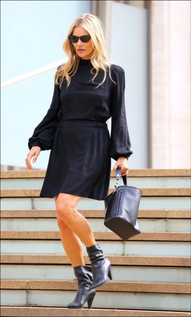 Kate, que actualmente está saliendo con Nikolai von Bismarck, vistió un elegante minivestido negro de manga larga que combinó con botitas cortas negras.