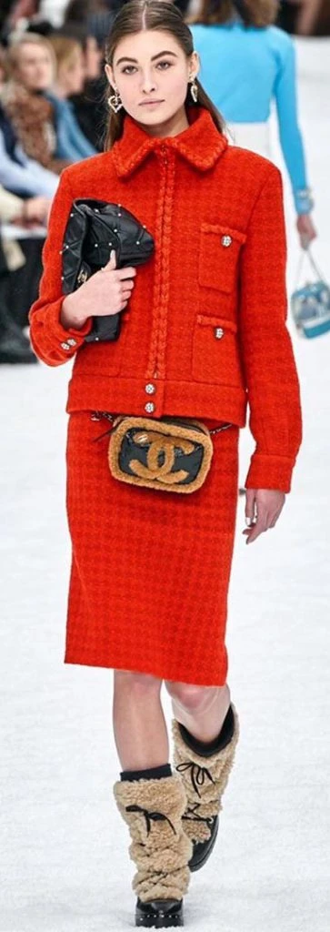 Además combinó con stilettos blancos, llevó el pelo suelto, los labios maquillados del mismo color que la chaqueta y cartera negra también Chanel.