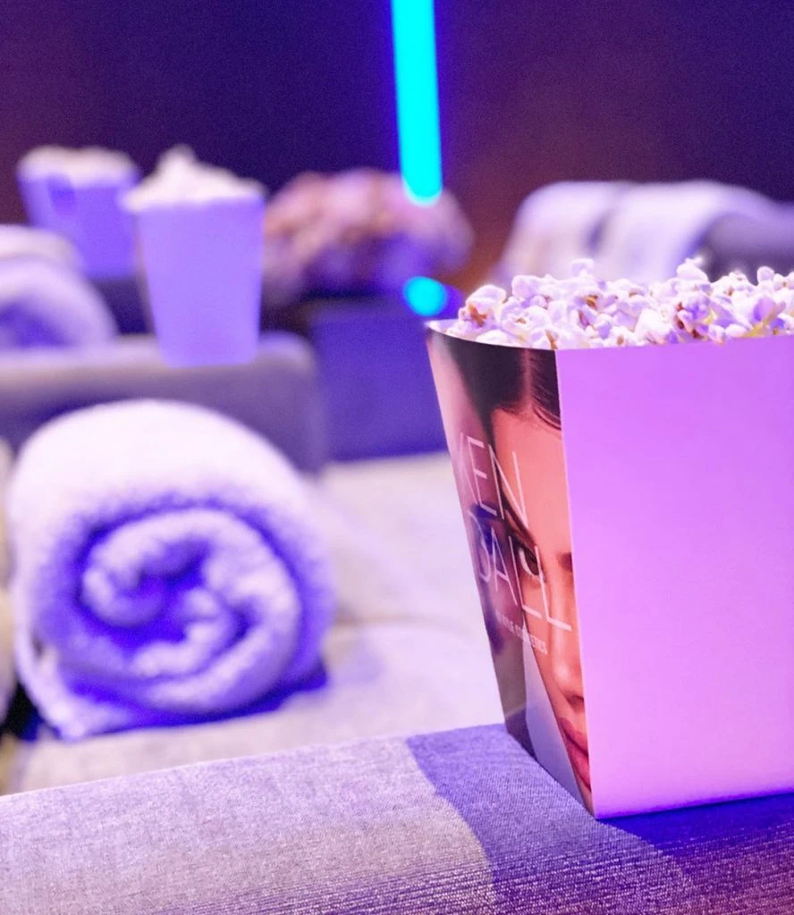 Eso incluyó el minicine que (al igual que su hermana Kim) Kylie Jenner en casa. La noche de lanzamiento se convirtió en cine para dos, con pochoclos y golosinas (tuneadas) incluídas: "Kendall by Kylie Cosmetics" por doquier.