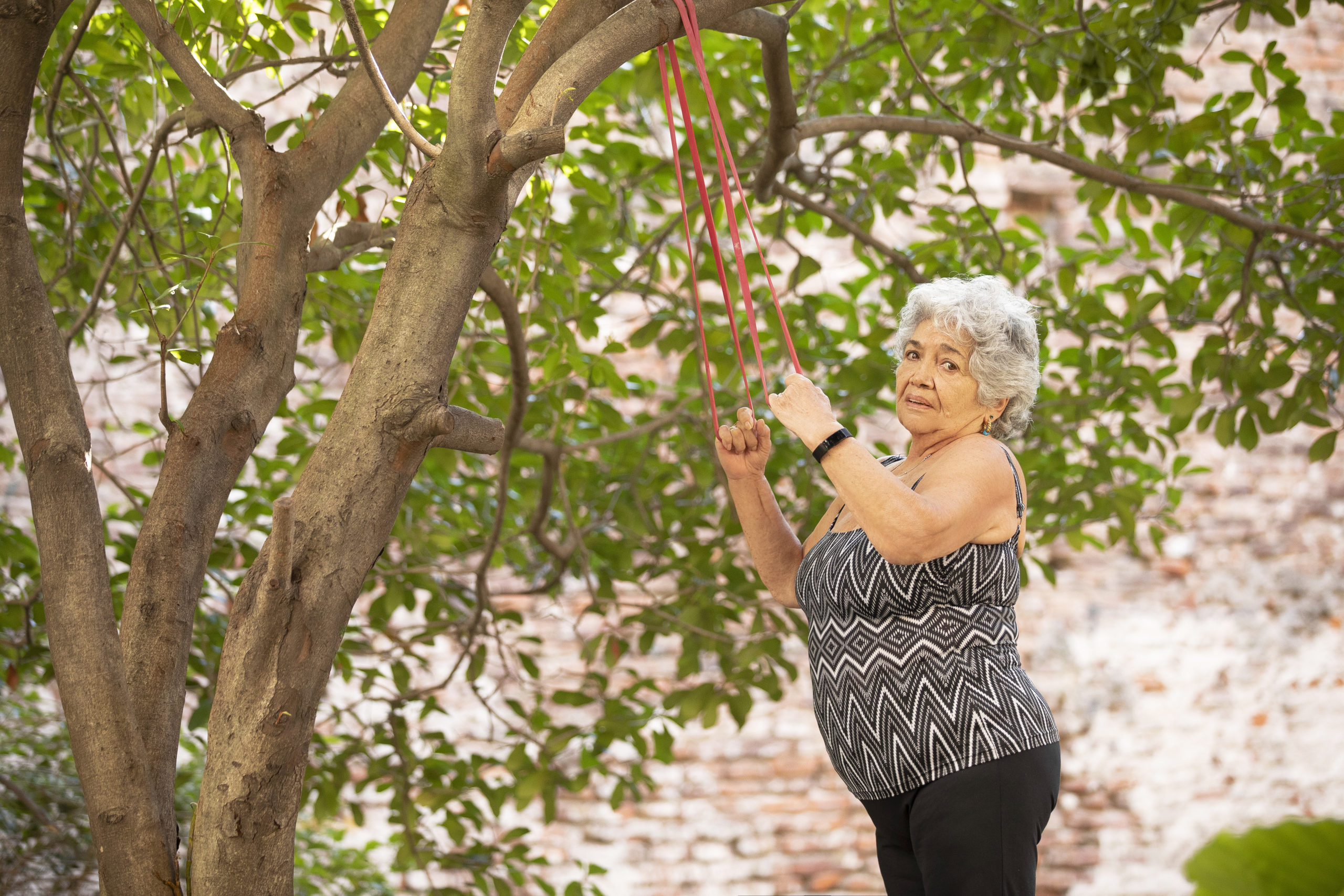 “Lamentablemente, cuando yo era chica, las mujeres no hacíamos ejercicio ni nos dejaban ir al club. Así que yo dibujaba, leía y juntaba flores en el jardín. Pero ahora no hay día (incluso en cuarentena) en el que no me mueva”, explica esta abuela fit mientras nos muestra sus elementos de gimnasia.