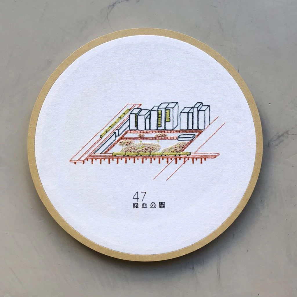 “Como práctica, en ese taller te pedían bordar con tema libre, lo que cada uno quisiera. Entonces yo empecé a llevar dibujos de arquitectura. Arranqué con los bocetos de un libro que me gusta mucho ´Made in Tokyo´, de un estudio de arquitectura japonés (Junzo Kuroda y Momoyo Kaijima) que reúne un compilado de edificios que por sus características, muchas veces pasan desapercibidos a ojos de la gente”, cuenta.