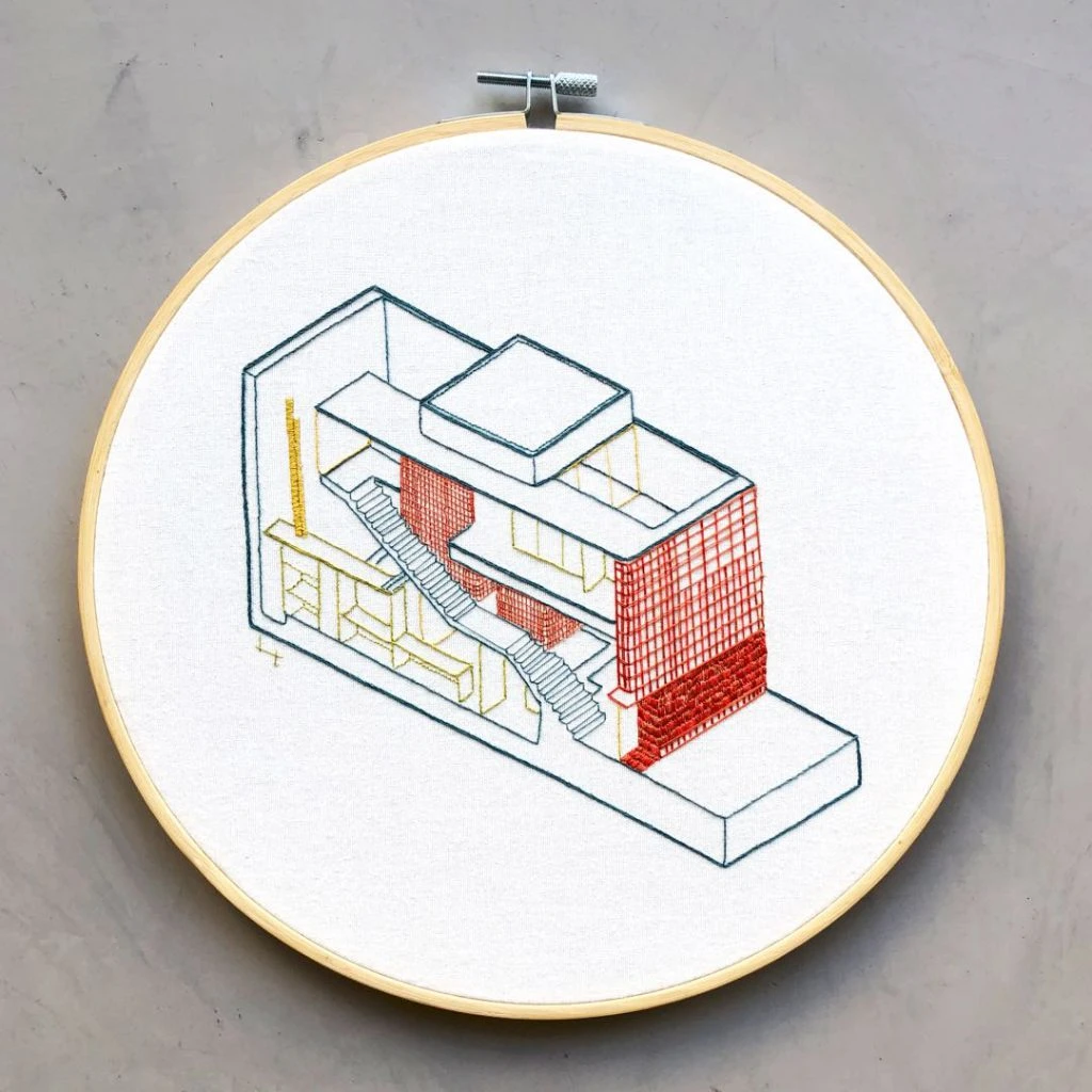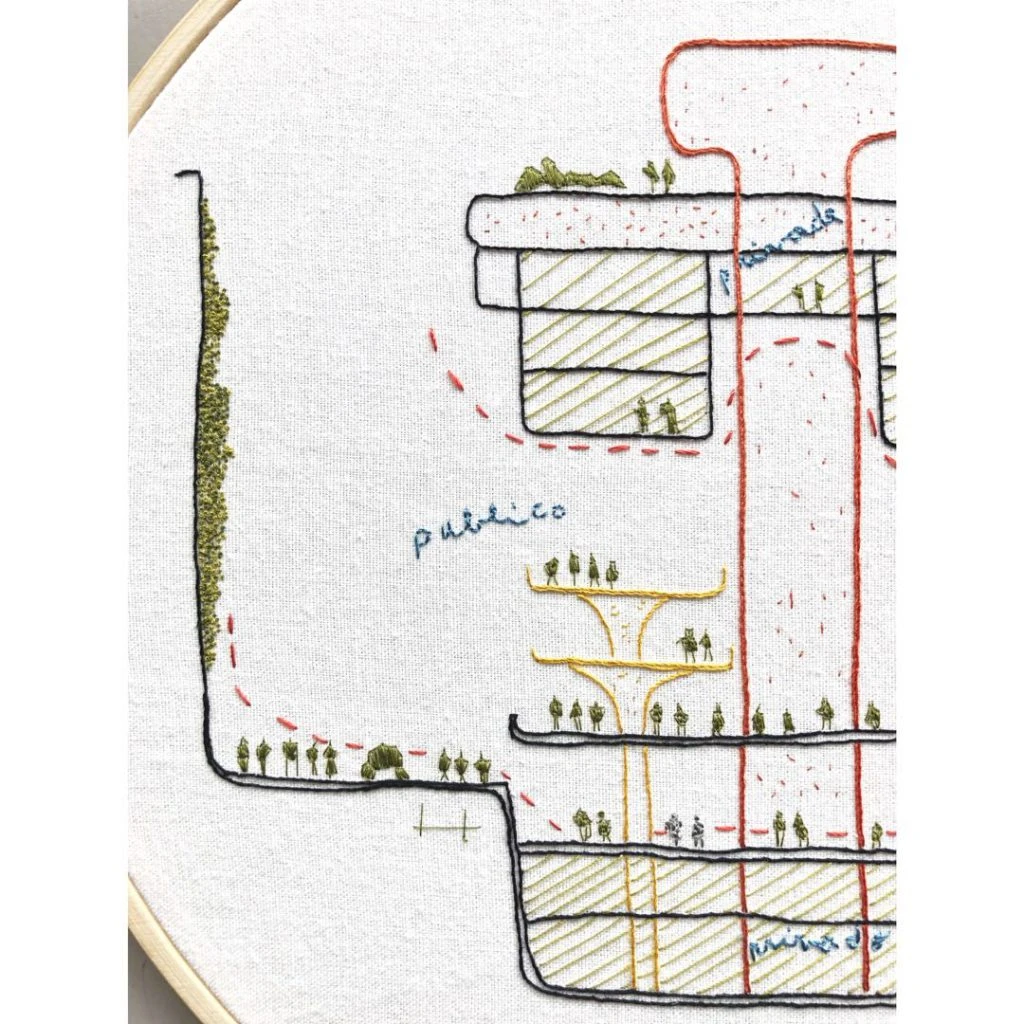¿Cuál es punto de unión entre el bordado y la arquitectura? Luciana lo explica así: “Existe una retroalimentación de la arquitectura al bordado y viseversa. Bordar un proyecto me ofrece el conocimiento de ver la obra desde otra perspectiva” detalla.