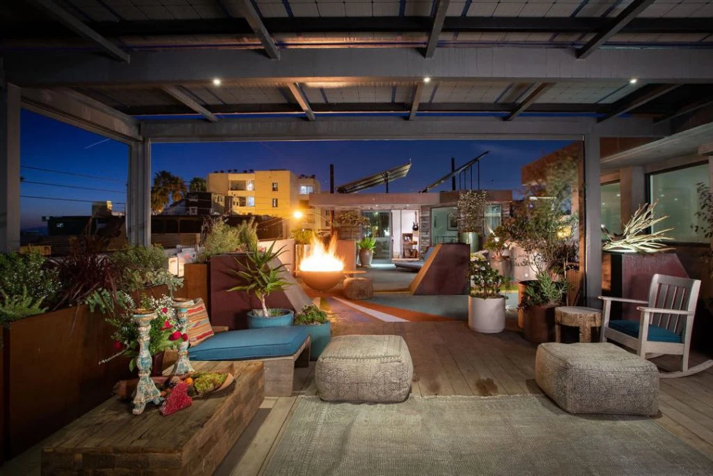 De estilo contemporáneo, la casa de la actriz de El Irlandés fue diseñada por el arquitecto David Hertz, reconocido en California por sus trabajos en construcciones sustentables. Y fue bautizada con el nombre de Hollywood Bowl House en honor al mundialmente famoso anfiteatro de Los Angeles.
