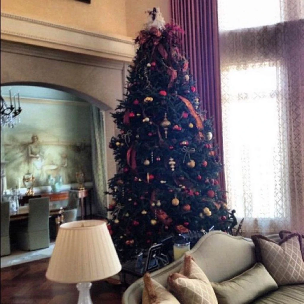 Las fotos de la mansión se dieron a conocer a través de imágenes publicadas en redes sociales por su dueño, Tyler Perry. De techos altos, en el living cuenta con una lámpara colgante de cristal. El sofá de estilo francés está tapizado en tono oliva haciendo juego con la alfombra y enfrentado a una mesa ratona con tapa de vidrio y bordes en negro. Los ventanales tienen doble cortina, estilo palacio.