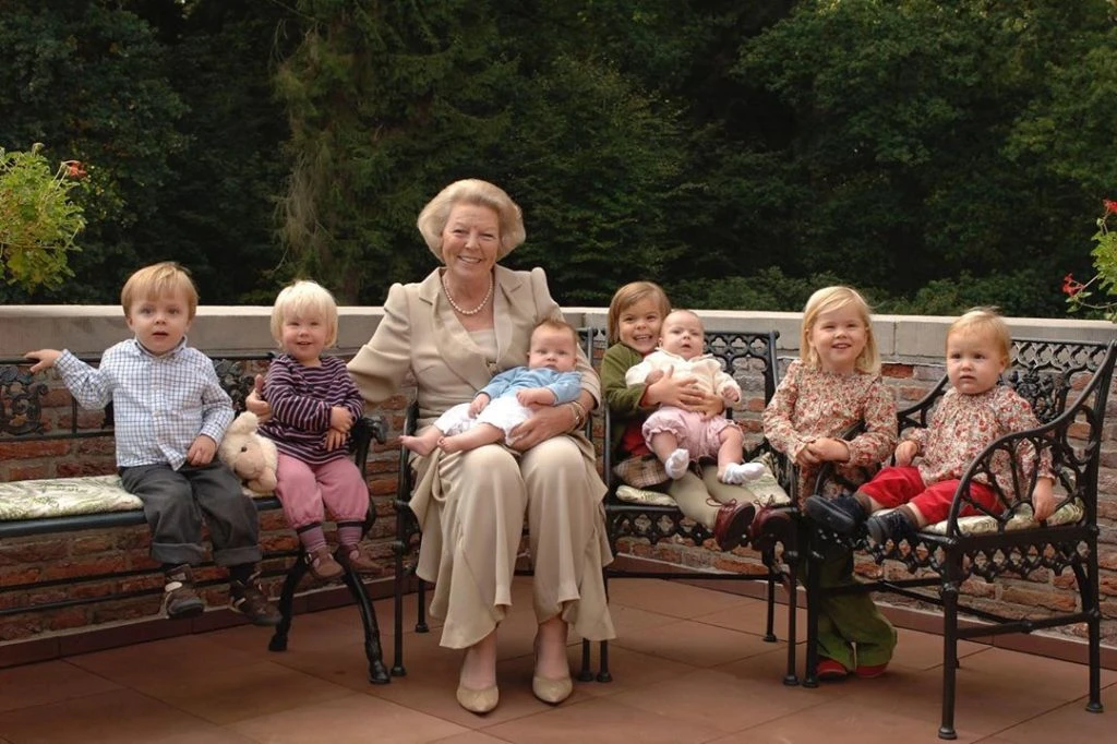 El desafío de los jueves de compartir fotos de archivo llegó a la cuenta oficial de la casa real de Holanda que publicó una foto de Beatriz con su clan de nietos y nietas.