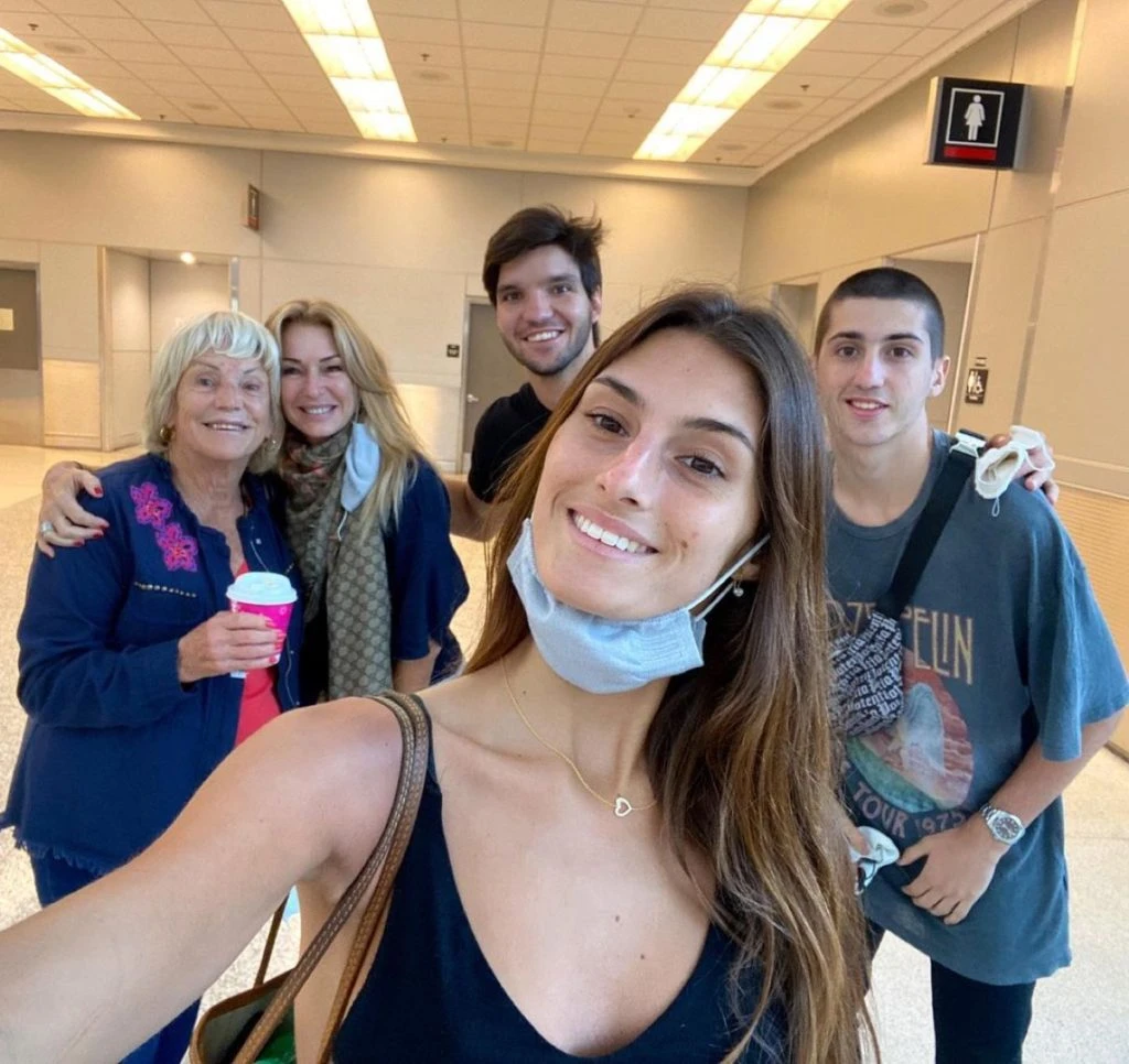 Viajó junto a su marido, Diego Latorre, sus hijos, Dieguito y Lola que fue acompañada por su novio Jerónimo y también llevó a su mamá Dora.