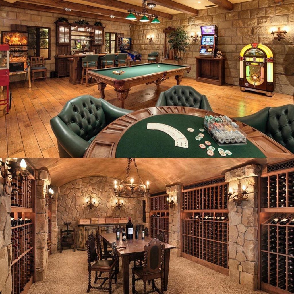 La casa tiene también sala de juegos con mesa de pool, de póker, un bar, sillones de cuero con respaldo capitoné, varios flippers y una rocola.