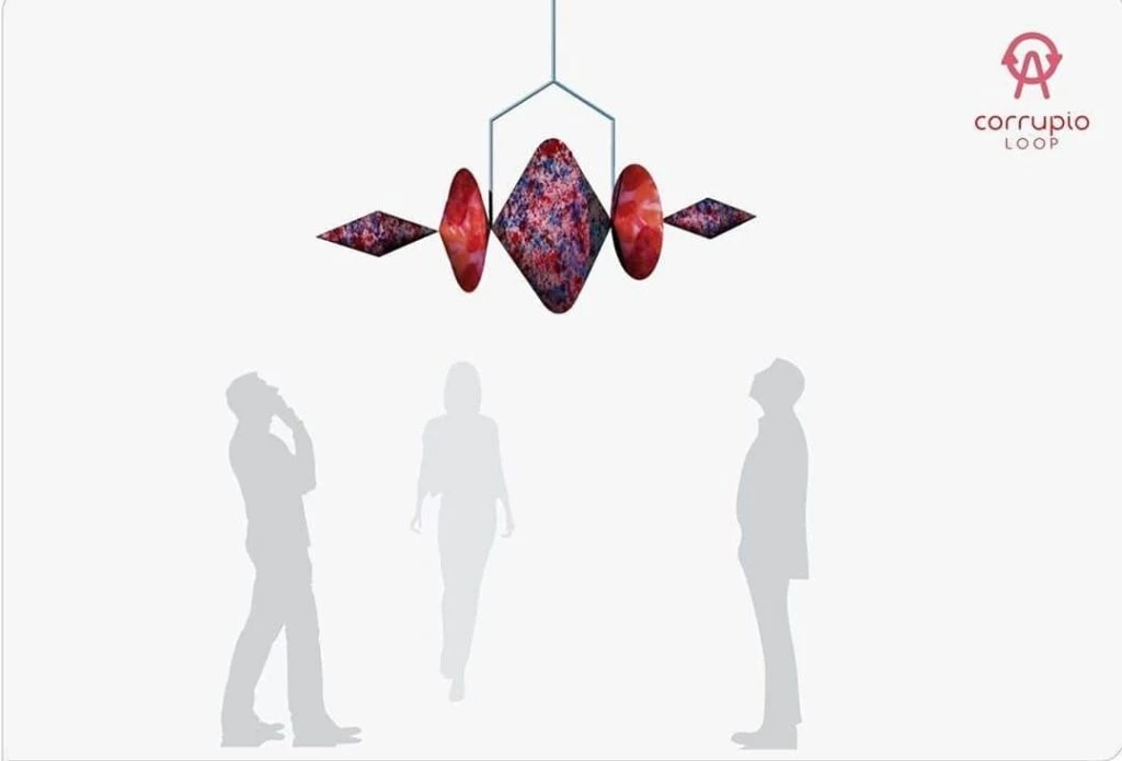 "El diseño de Corrupio se basa en el valor del reciclaje y el concepto de transformar el material de la basura y convertirlo en algo especial, útil y significativo", opinó Erico Gondim. El diseño utiliza como material principal deshechos plásticos (tapitas de bebidas molidas y trituradas) y cuerdas en las que se inserta la lámpara. Una pieza simple, casi un juguete, que tiene un fin mayor: concientizar.