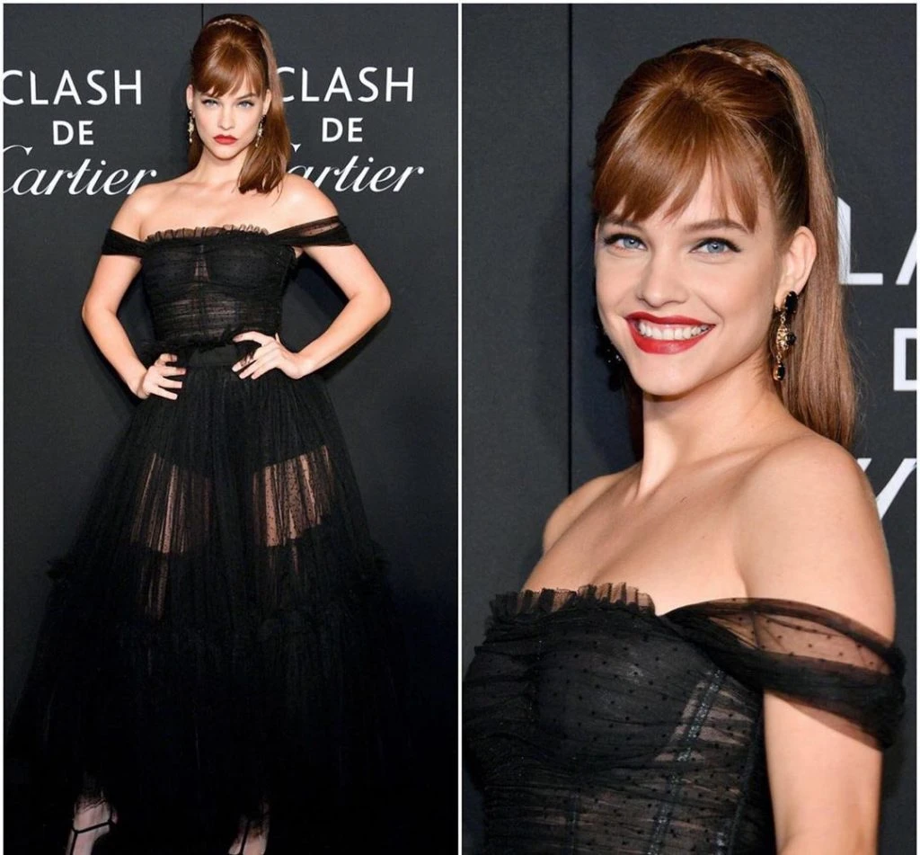 Vistió un espectacular diseño en color negro de la colección de Alta Costura otoño-invierno 2019 de Dior. Un vestido con corpiño de escote corazón transparente y falda de varias capas de tul. Lo combinó con una gargantilla de brillantes de Maison Birks. Llevó el pelo recogido en un sencillo moño y make up con labios marrones.