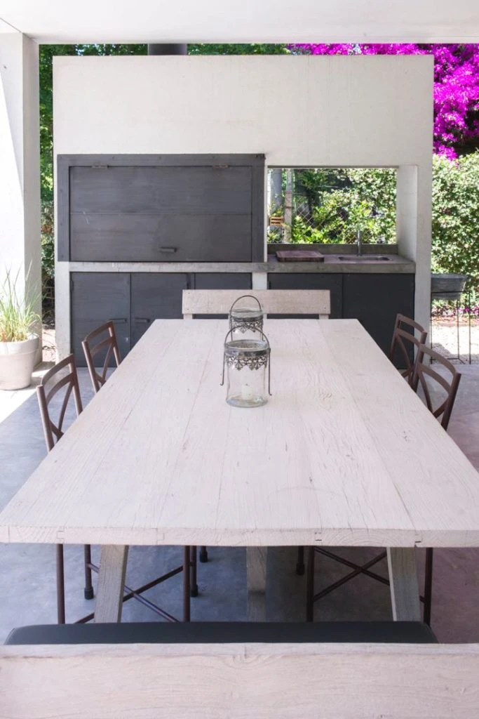 Las galerías funcionan como extensiones de la casa y se diseñaron profundas y espaciosas, pero al mismo tiempo cuidando cada detalle para que no oscurezcan el interior. Para lograrlo, se proyectaron con vigas invertidas en el borde que dan una altura libre ininterrumpida y se buscaron laterales abiertos para que la luz ingrese por todos los lados, incluso en la zona de la parrilla.