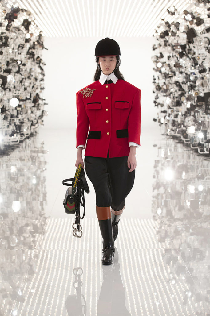 Cascos de montar y látigos de strass remontaron a los orígenes de Gucci como fabricante de monturas.