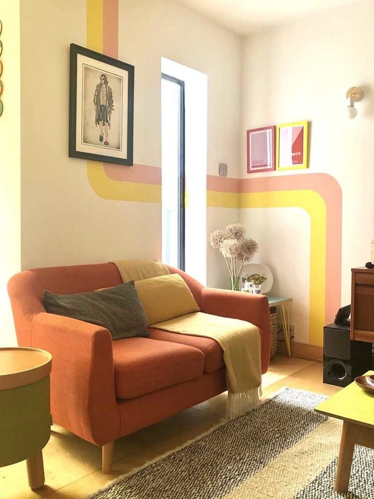 Una sola franja de color en la pared puede provocar un punto de atracción inmediato en un ambiente, tanto para renovar la experiencia visual del espacio como así también para guiar una nueva organización.