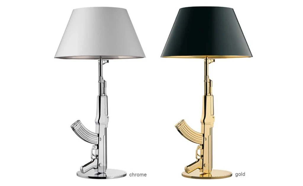 Provocativa, simbólica, polémica y subversiva, la colección de lámparas Guns de Philippe Starck denuncia que el comercio de armas de fuego es el calor de la codicia en el mundo moderno.