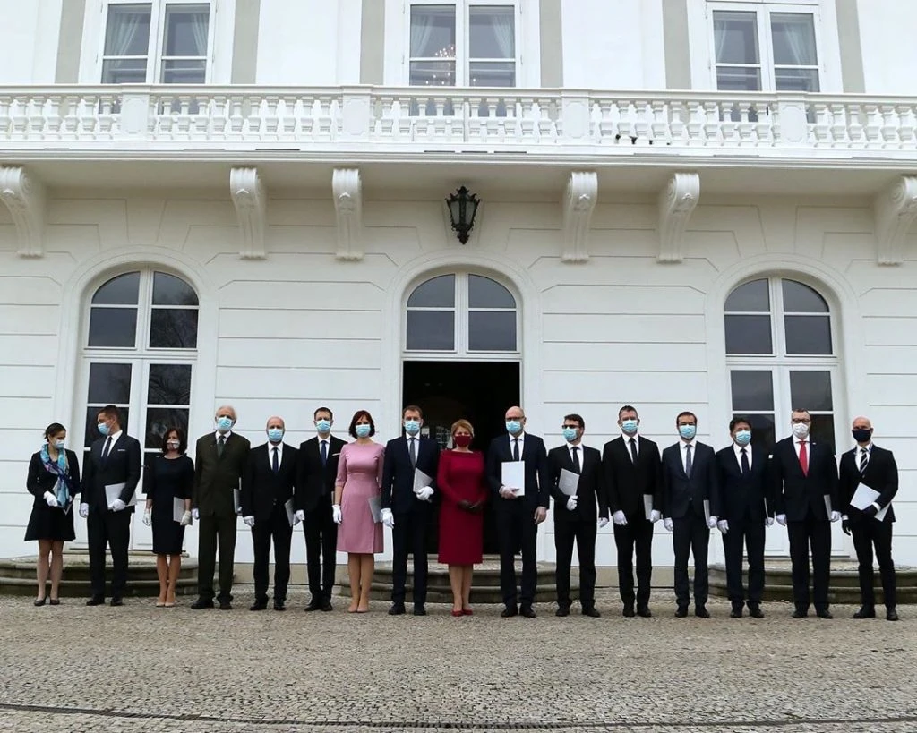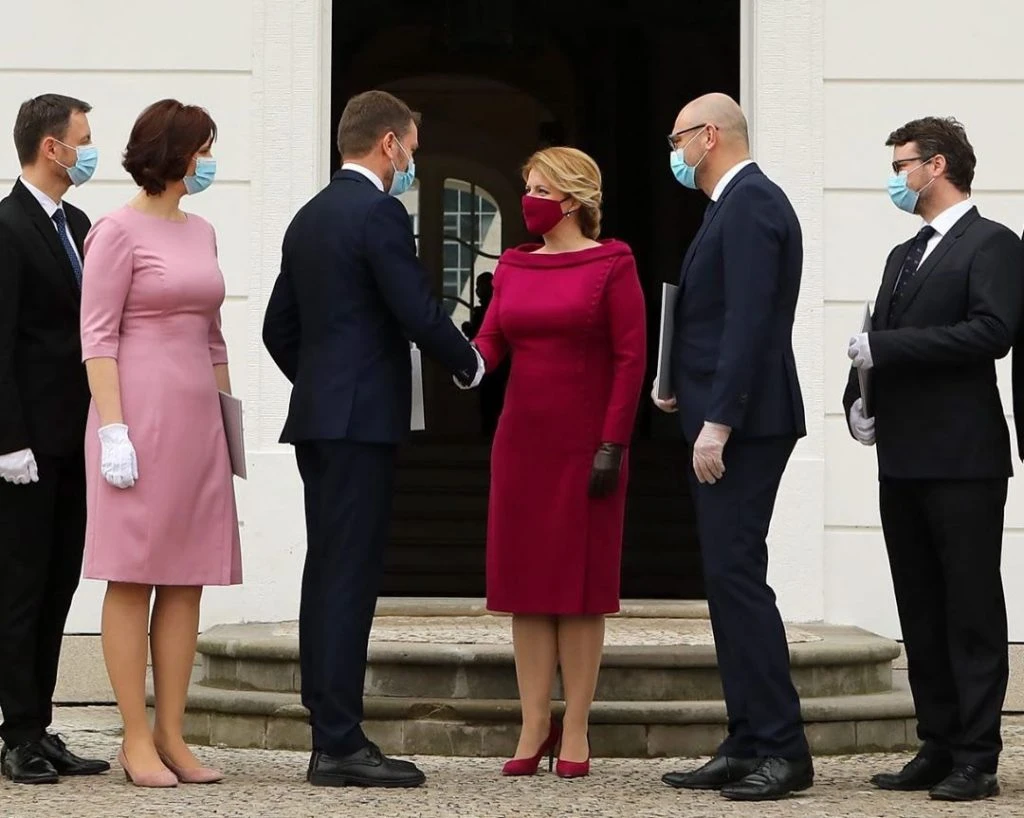 En la jura de Igor Matovic, el nuevo primer ministro de Eslovaquia, todos los miembros de su gabinete asistieron protegidos con barbijo y guantes. Pero sin duda, la más llamativa fue la presidenta y jefa de Estado del país, Zuzana Caputova, que eligió un barbijo del mismo color que su vestido, diseño de la diseñadora eslovaca Jana Kuzmová.