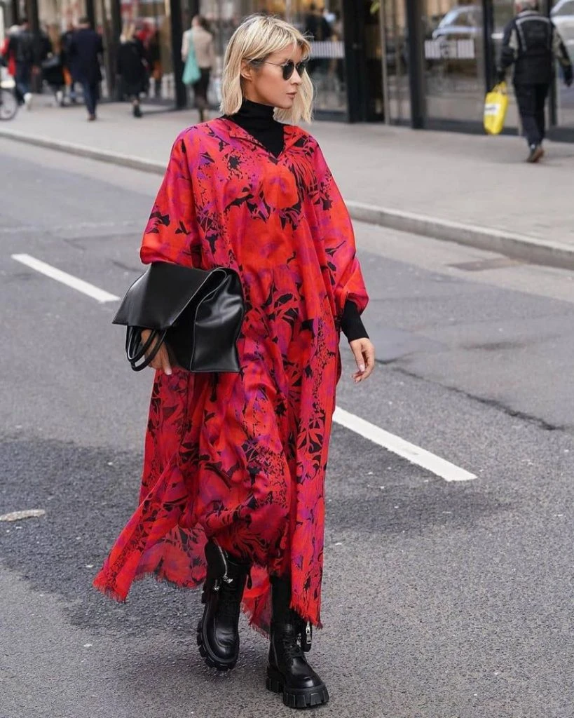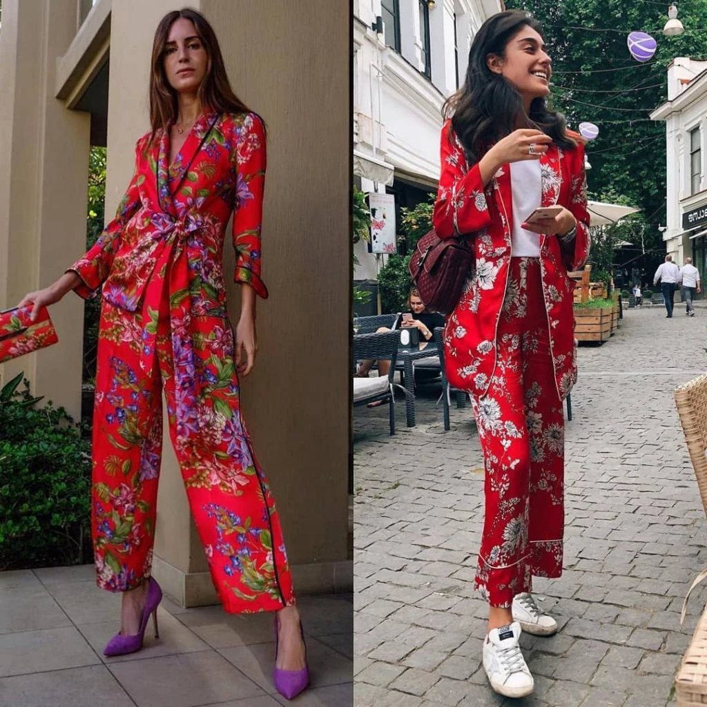 Las estampas florales en total look y con fondo rojo, pueden darle un aire oriental a tu look.