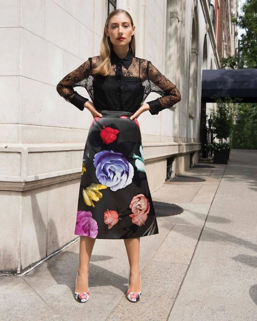 Las faldas floreadas se llevan con prendas lisas. Pero si te atrevés, le podés dar un look fashionista a tu outfit combinándola con otra estampa, como por ejemplo, cuadros.
