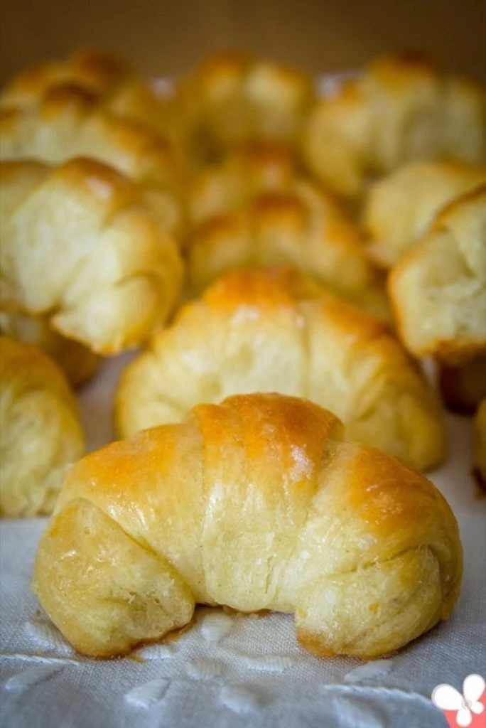 - Paso 7: enrollá cada triángulo y doblá las puntas sobre placa enmantecada y enharinada, una detrás de la otra, pisando las puntas con la base de la siguiente.