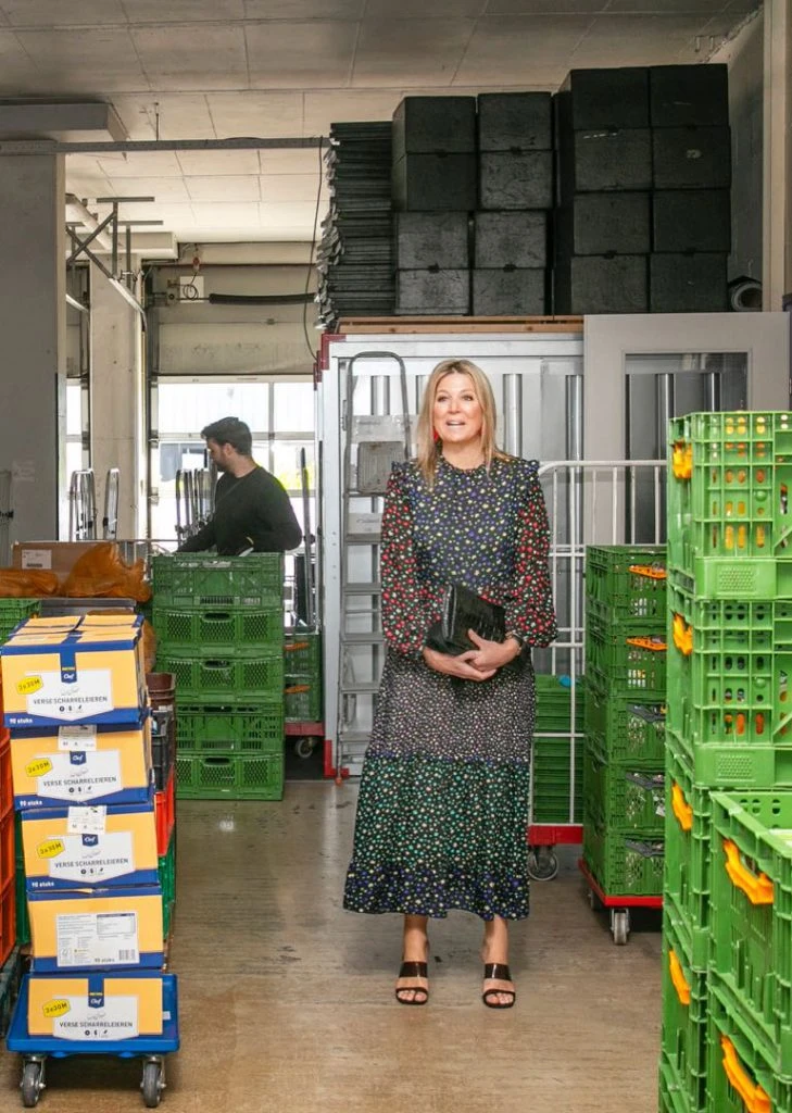 Otra vez sin barbijo pero manteniendo la distancia social, Máxima visitó un centro de distribución del Banco de Alimentos. Con un look súper primaveral y la simpatía de siempre, la reina les expresó su agradecimiento a los trabajadores que están colaborando voluntariamente en medio de la pandemia para distribuir alimentos en todas las familias.