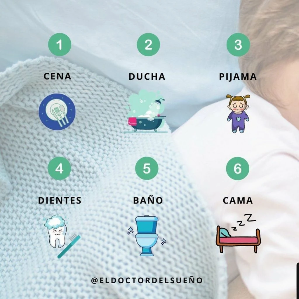 1- Cena: La hora de la cena va a indicar el inicio de la noche, se van terminando las actividades del día. La comida variará según la edad. No es recomendable consumir gaseosas cola. Tienen cafeína y hacen disminuir la calidad de descanso, alterando el sueño en la etapa REM y profundos que son fundamentales para afianzar la memoria y el aprendizaje.