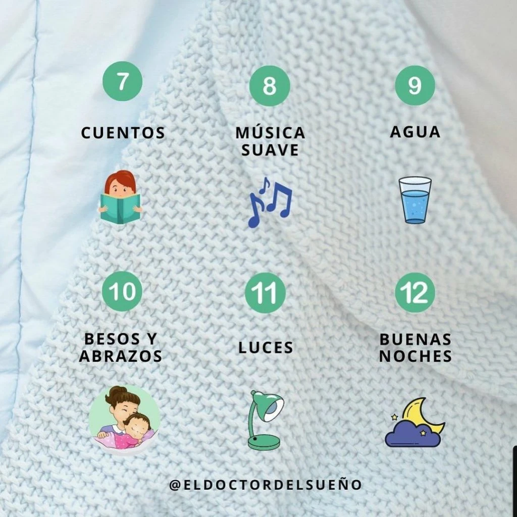 11-Luces: Las luces las recomiendo apagadas- sugiere el médico-pero en caso de querer tener algo de iluminación que sean en tonos cálidos y baja intensidad. Un velador alejado del rostro puede ser una buena idea.BUENAS NOCHES. Expresarles el deseo de las "buenas noches " es otra demostración de afecto. Ahora es momento de elegir con qué soñamos.
