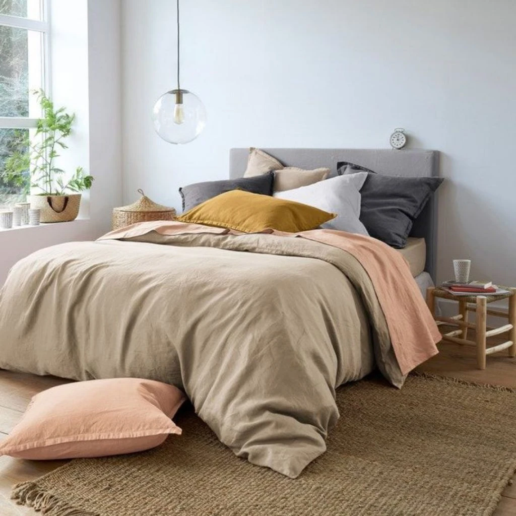 - Los cubre edredón en lino visten la cama. Es un género muy noble y muy natural. Optá por tonos como beige, ocre o grises. Son fáciles de combinar.