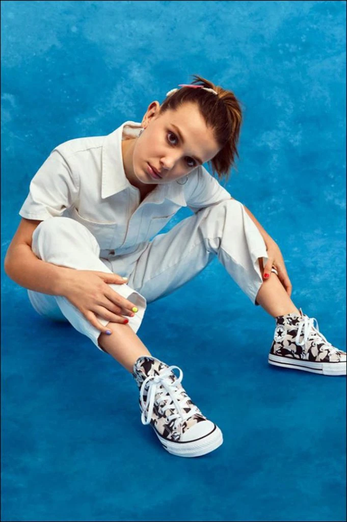 Acaba de lanzar su línea de calzado para Converse Chuck Taylor All Star inspirada en la naturaleza, el mar y sus amadas ballenas. Millie se convierte así en la celebritie más joven en realizar una colaboración con la marca.