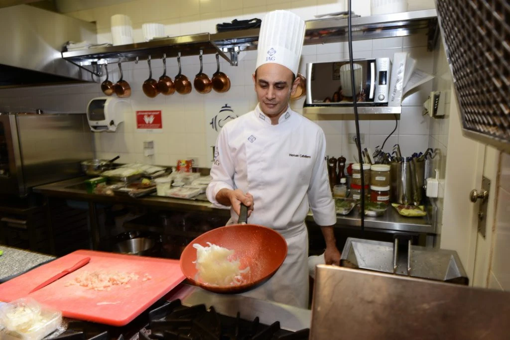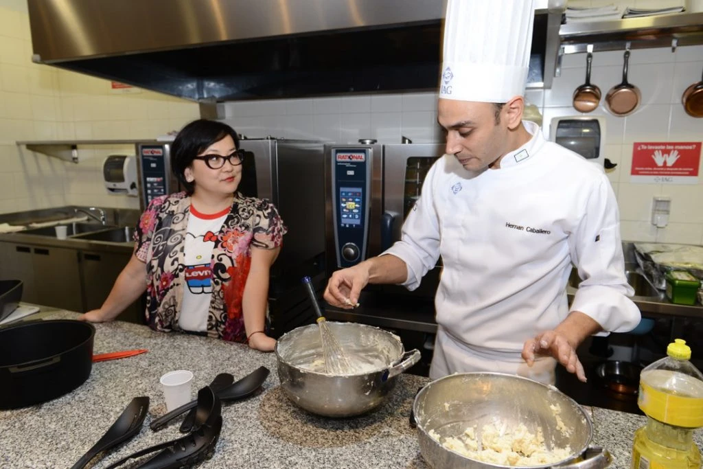 Hernán Caballero, profesor del Instituto Argentino de Gastronomía y además chef ejecutivo del NH Lancaster junto con nuestra periodista gastronómica Paula Ikeda compartieron la cocina del IAG Martínez ante más de 30 invitados especiales para llevar adelante tres recetas –tres platos- tradicionales de América, el Mediterráneo y Asia.