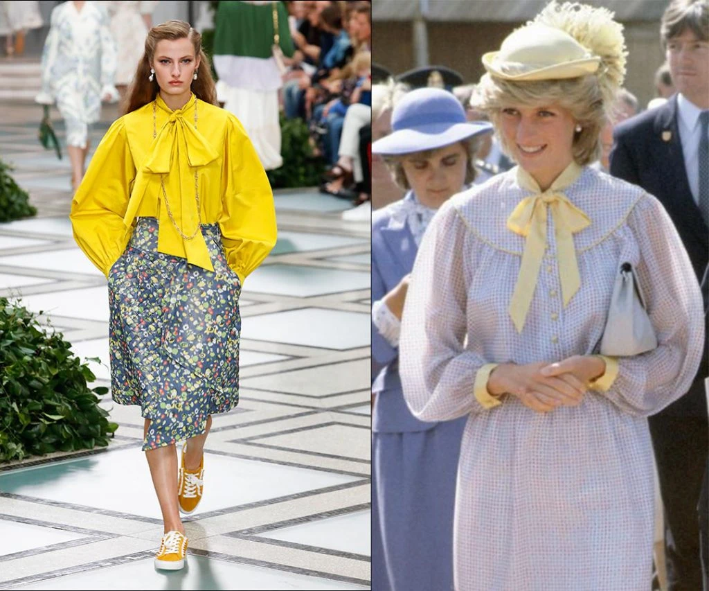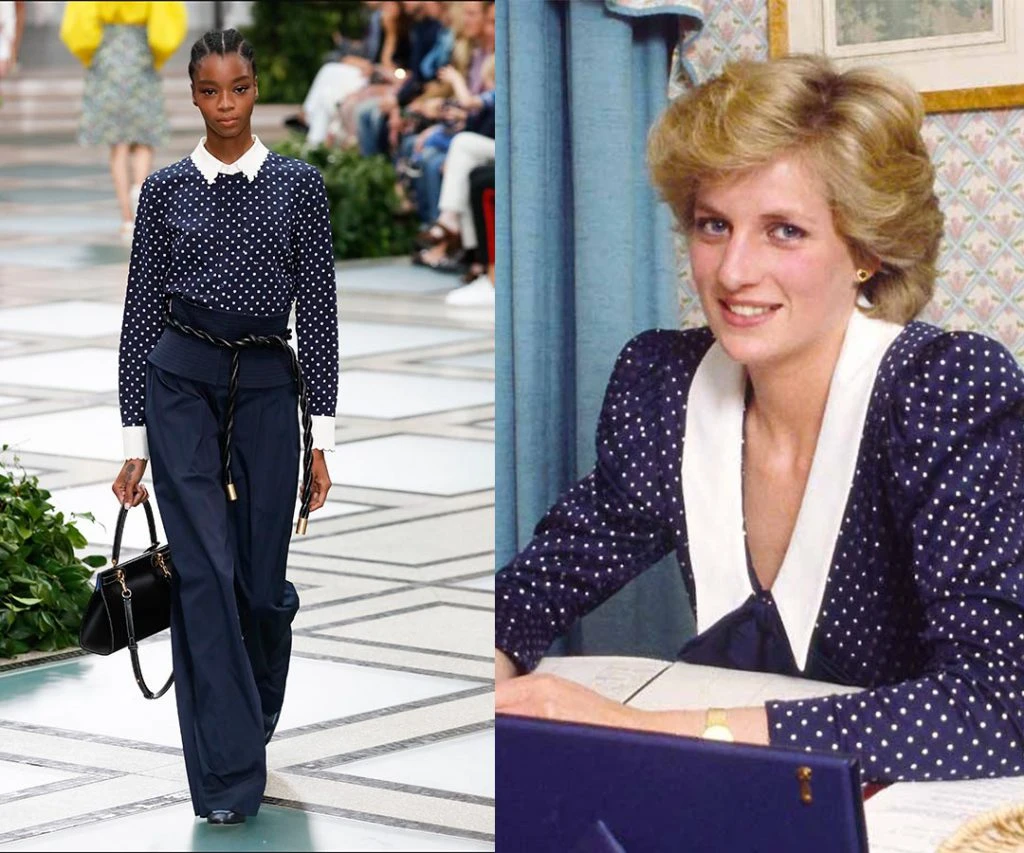 Tory Burch se inspiró en la princesa Diana para crear su colección primavera-verano 2020. Los lazos con moño en el cuello, los lunares, los blazers y las mangas tipo farol hasta las perlas colgantes, ADN del estilo de Lady Di estuvieron presentes en la pasarela de la Gran Manzana.