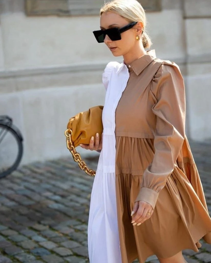 Si bien ya veníamos viendo con anterioridad la prenda bicolor, todo apunta a que este otoño/invierno ganará mayor terreno. Tanto en vestidos, camisas, en abrigos y hasta incluso pantalones largos, esta tendencia no deja de sorprender. Se vio mucho con blanco&beige y el dúo que nunca pasa de moda black&white.
