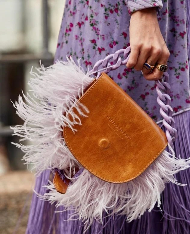 La irrupción de los flecos XXL y las plumas en los accesorios, mayormente en carteras como también se vio en vestidos y polleras, ya es una tendencia que se anuncia a los cuatro vientos. Impulsados por firmas como Etro, Philosophy y Emporio Armani y protagonistas principalmente en las calles de Madrid.