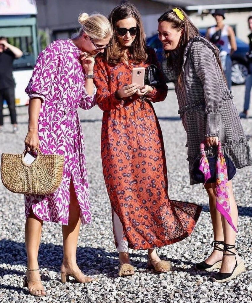Esta temporada se vieron los vestidos estampados como absolutos protagonistas de las calles de Copenhague. Si bien en temporadas anteriores triunfaron en su versión midi, esta temporada se extienden hasta el tobillo convirtiéndose en maxivestidos con volumen, volados y de silueta fluida.