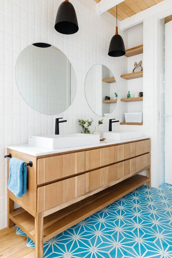 La madera vuelve en su estado natural a un ambiente que nunca le fue muy afín: el baño. Y lo hace como material protagonista de muebles vanitorys, tanto de línea moderna como en una onda más campestre.