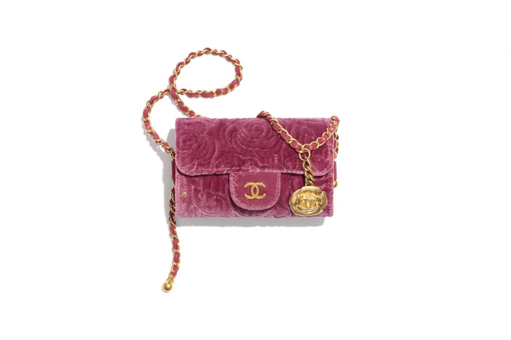 La riñonera clásica de color rosa violeta ha sido reelaborada con un material de gamuza afelpada que muestra costuras con motivos de rosas junto con herrajes en tonos dorados. Foto: Fotonoticias.