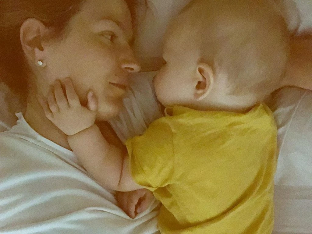 Marcela Kloosterboer subió una foto en la que se la ve mirando "enamorada" a su bebé Otto momentos antes de la siesta. "Tachame la doble", posteó la actriz en su cuenta de Instagram.
