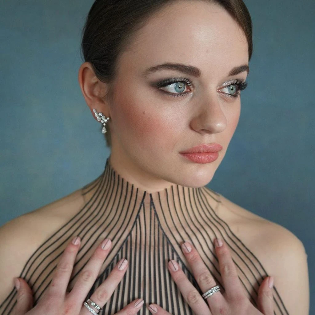 Joey King jugó con las líneas para combinar su outfit con las uñas.