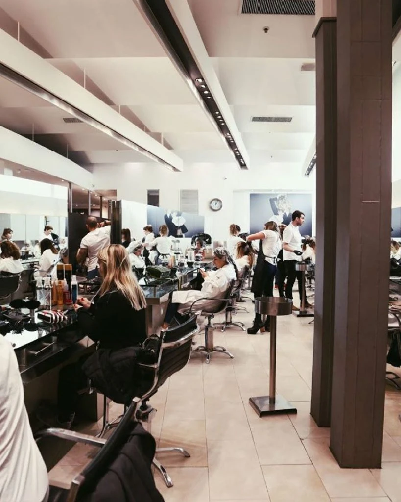 Por día, cientos de clientas solían frecuentar el salón en busca de corte y sobre todo: ¡color! (todo se cortó el 19 de marzo). "Tenemos a favor la amplitud del espacio y la galería posterior, aire libre, lo que permite la ventilación".