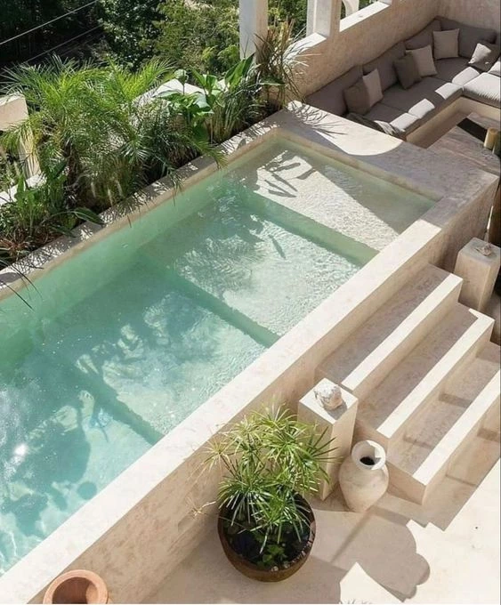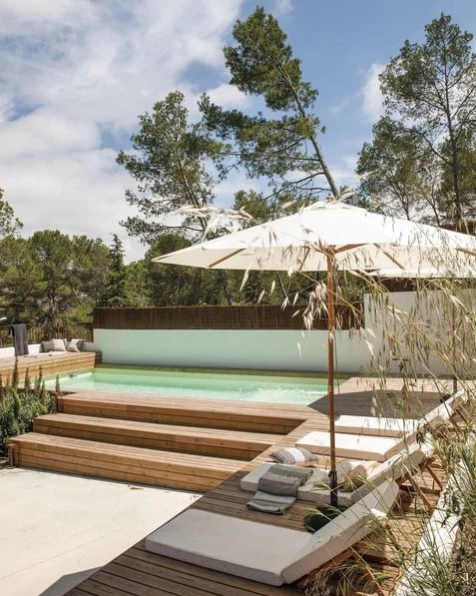 Por otro lado, la zona baja de la piscina se ha extendido, dado que varias tienen escalinatas amplias e irregulares donde se pueden armar lounges con reposeras o sillas, habilitando un espacio para conversar y tomar unos cocktails bajo el sol.