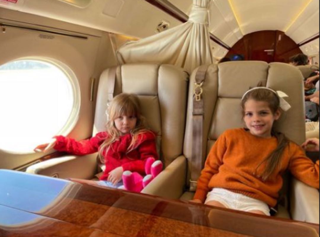 También compartió fotos de Francesca e Isabella bailando al ritmo de Maluma en el interior del avión.