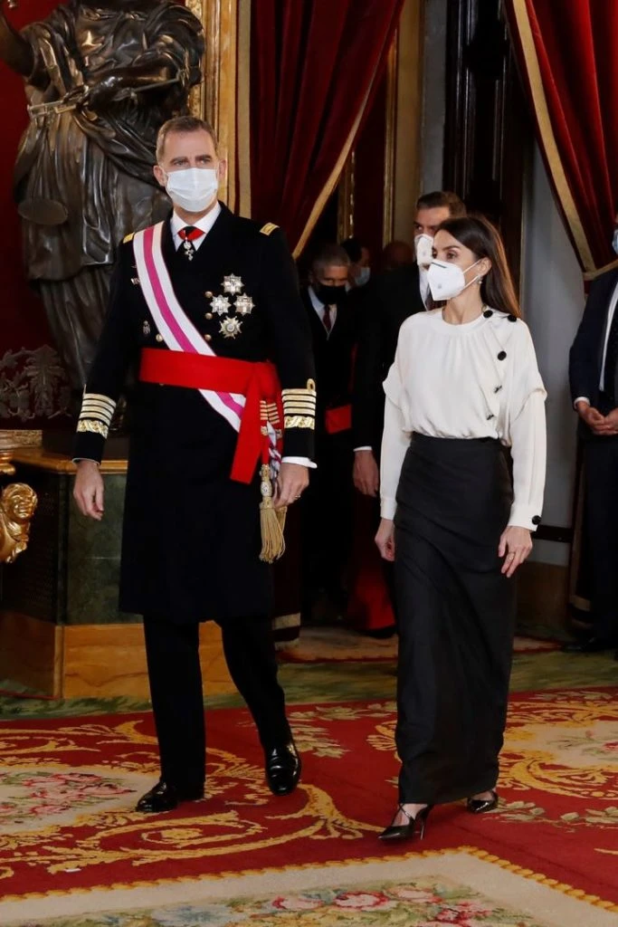 La ceremonia se realizó en la plaza de la Armería del Palacio Real y estuvo presidida por Felipe VI y Letizia Ortiz, quien sorprendió con su look súper elegante y sobrio.