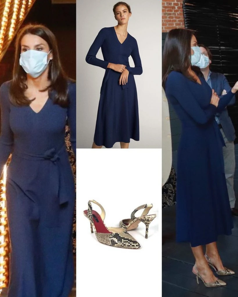 Clásica y elegante, esta semana la soberana eligió un vestido de largo midi en color azul oscuro de la etiqueta española Massimo Dutti, una de sus favoritas.