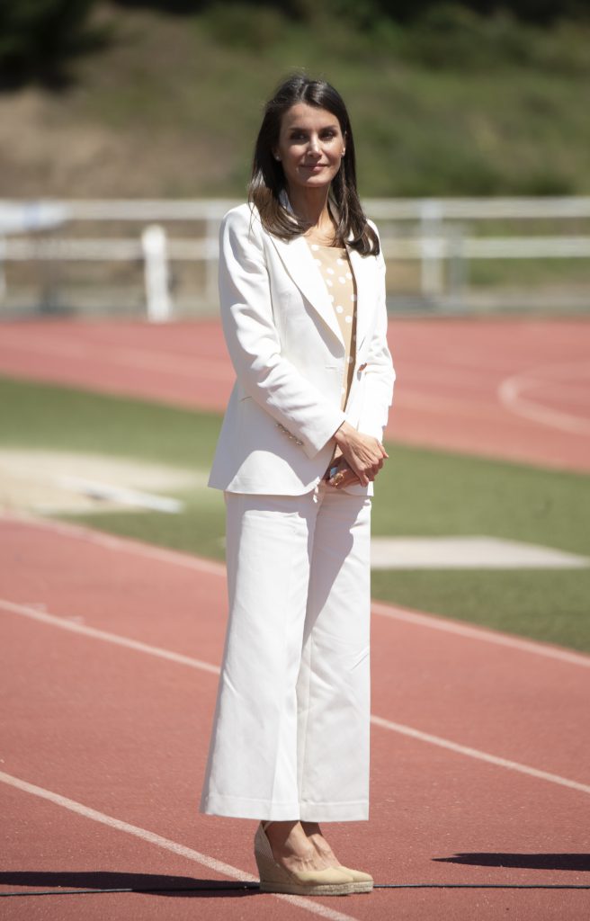 Acercándose a la nueva temporada de verano, la monarca eligió el color off white para esta visita.
