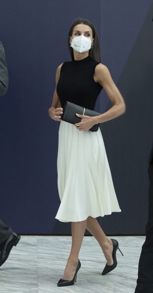 A diferencia de otras veces, la reina de España decidió lookearse con prendas de estreno en una de las combinaciones más antiguas, recurrió a los opuestos blanco y negro.